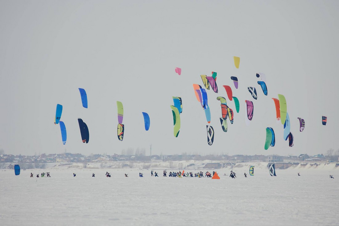 «В 13:00 дали старт первой гонки. Ветра заказали с запасом... в первую гонку пошли на 11х площадях. Дуло около 10 м/с. Дорога… бывало и лучше. Если серьезно – это могул: глубокий мокрый тяжелый снег с ямами и наддувами до полуметра. При сегодняшнем ветре на бакштаге скорости под 90 км/ч, что при такой дороге очень опасно… Мышцы не готовы к такой динамике: 90кг веса дают о себе знать. Все, кто впереди – очень хорошо готовы, молодцы! Сегодня ехать эффективно могли только те, кто весит до 80кг и очень хорошо готовы аэробно. Тяжеловесы – не могли отрабатывать дорогу. Мышцы закислялись и их попросту сводило. Во второй и далее гонках методично раздувало и к последней (4-й) уже вдувало 15-17 м/с. В крайнюю гонку вышло не больше 20 человек из всего флота!»