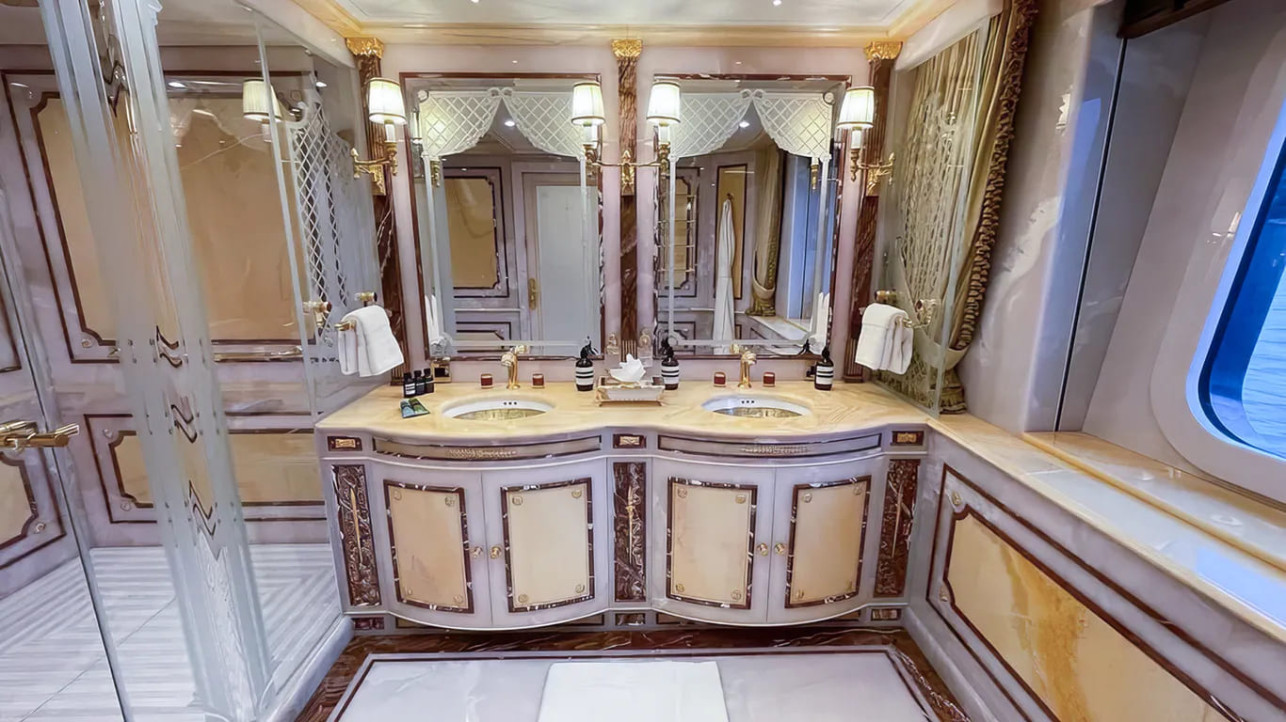 Действительно, если о 70-метровых карбоновых мачтах, парусах общей площадью 2934 кв. м, энергоустановке и заявленной скорости более 20 узлов было известно благодаря информации от голландской верфи Oceanco, где она была спущена на воду в 2018 году, то о внутреннем интерьере ходили лишь слухи, похожие на сказки Шахерезады. И вот, извольте убедиться, в этом сравнении что-то есть, хотя дизайнеры предпочитают говорить о стиле «Людовик XVI». Но тут же на вкус, на цвет…