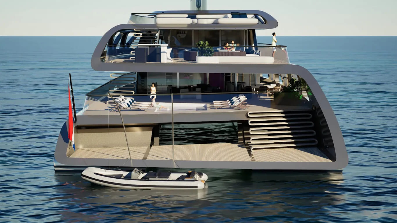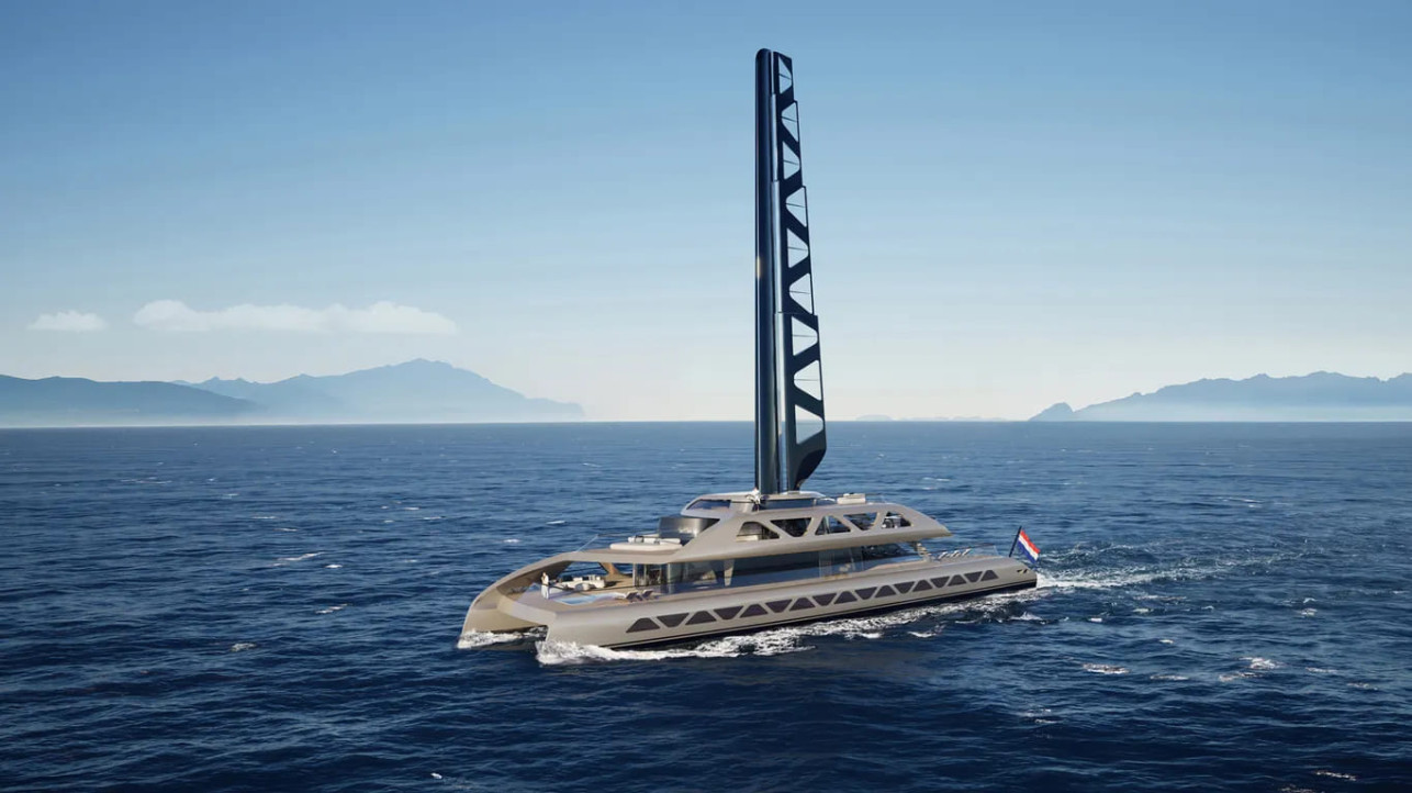Голландская верфь Royal Huisman представила свою концепцию 50-метрового катамарана под названием Aera с мачтой-парусом площадью 245 кв. метров, который также может поворачиваться на 360 градусов. Разумеется, управление парусом полностью автоматизировано. Моторы работают на «экологически безопасном» биодизельном топливе. Условия пребывания на борту катамарана таковы, что любые пожелания его «населения» будут немедленно выполнены.