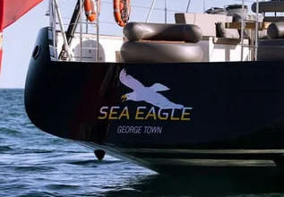 Спроектированная дизайн-бюро Dykstra Naval Architects, яхта по всеобщему признанию получилась очень удачной. У шхуны длинная ватерлиния, прямой форштевень и парусное вооружение Panamax с площадью 2580 кв. метров, причем «тотальная автоматизация» позволяет все три грота поднять одновременно. И наконец, Sea Eagle была отмечена многочисленными специальными наградами «за красоту и изящество». Ну, а раз все так хорошо, зачем изобретать что-то новое?