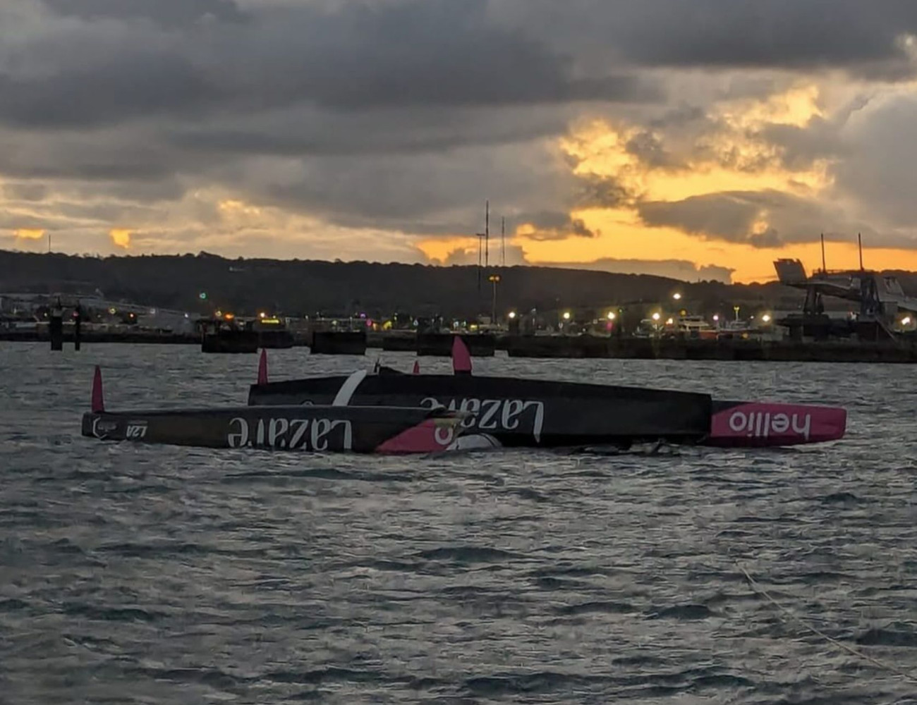 Первым трагическим героем прошлой ночи стала Lazare X Hellio под управлением Эрвана Ле Драулека и Танги Ле Турке. Через шесть часов после старта, в 20:27 UTC, в районе Ла-Гаага, тримаран накрыло мощной трехметровой волной при встречном ветре свыше 25 узлов, приведшей к перевороту. Шкиперы были эвакуированы с борта спасательным вертолетом и доставлены в Чербург.