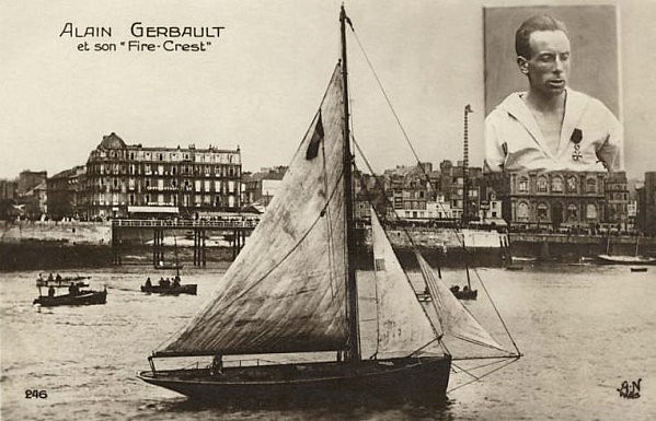 Ален Жербо родился 17 ноября 1893 г. во Франции, в городе Лаваль, департамент Майенн. Родители его были людьми среднего достатка, однако постарались дать сыну достойное образование, отправив в парижский колледж Св. Станислава. Там же, в Париже, Жербо окончил и политехнический институт. С началом войны записался в армию добровольцем. Был летчиком-истребителем. После войны стал профессиональным спортсменом - сначала футболистом, а потом теннисистом. Выиграл несколько представительных турниров. Известен был также как великолепный игрок в карты, особенно в бридж и покер. Купив яхту «Файеркрест», решил первым в одиночку пересечь Атлантику с востока на запад. 6 июня 1923 г. покинул Гибралтар и 15 сентября прибыл в Нью-Йорк. Через год продолжил плавание с целью обойти вокруг света и стать третьим яхтсменом, сделавшим это в одиночку. Плавание продолжалось почти пять лет - кольцо было замкнуто 26 мая 1929 г. Два года спустя отправился в новое плавание на новой яхте «Ален Жербо». Все оставшиеся годы жизни провел на островах Тихого океана. Умер на острове Тимор 16 декабря 1941 г. Похоронен, согласно завещанию, на острове Бора-Бора.