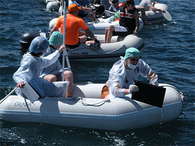 Как всегда, гвоздем программы была традиционная 'Гонка на тузиках', главное правило которой - использование кухонной утвари вместо весел. Борьба была нешуточной, не только за первое место, но и за приз на лучший костюм. Все экипажи вышли на дистанцию серьезно подготовленные, и выбрать лучший костюм было самым сложным процессом за всю регату! Победители гонки: команды Настоящие индейцы, Ivory и Волки. Приз за лучший костюм: экипаж "SnowPro - SNOWa PRёт" в костюмах хирургов-похметологов.
