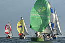 Яхты «Конрад-25R», «25 футов» и «30 футов» в первой гонке после п. Большой Камень идут на финиш через Амурский пролив.