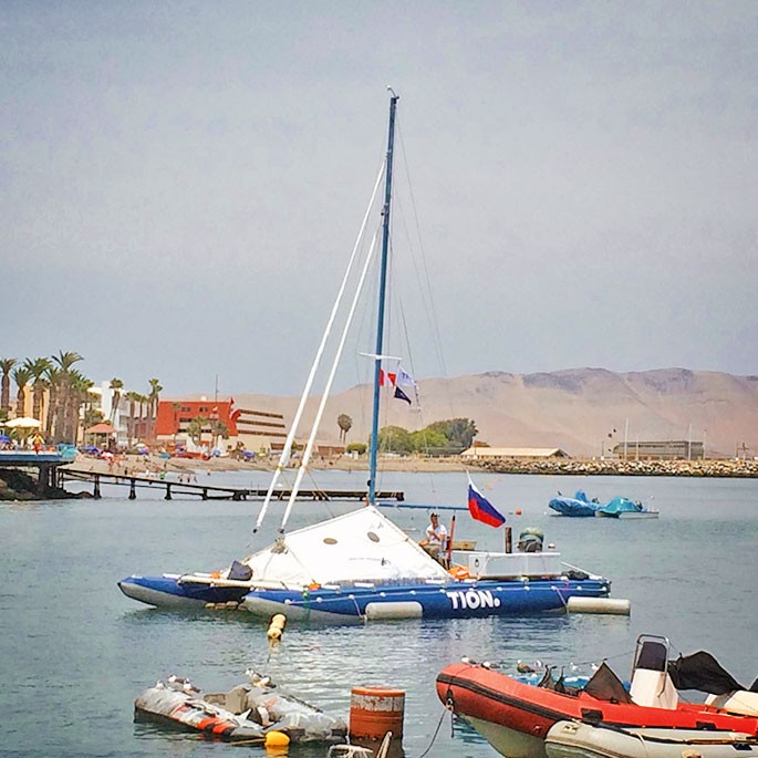 Стартовал первый этап проекта «Сибирь – Полинезия». Пять сибирских яхтсменов на разборном катамаране «Тион» отправились в путь из перуанского Кальяо до острова Пасхи (видео).