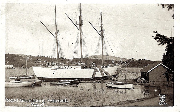 Судно было построено по заказу Рауля Амундсена в Осло в 1917 году и названо в часть норвежской королевы. На нем покоритель Южного полюса хотел подойти как можно ближе к Северном полюсу. Но далеко подобраться к нему он не смог,  однако пройти Северо-Восточным путем норвежцу удалось. В 1921 году Maud прибыл в Сиэтл. Амундсену вскоре по финансовым соображениям пришлось продать его торговой компании. В 1930 году простоявшее длительное время без ремонта и замершее во льду судно затонуло неподалеку от берега Кембриджского залива.