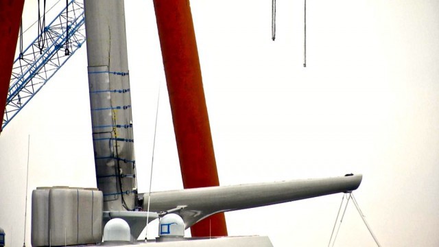 На задней мачте (у ее основания) 145-метрового судна, как сообщили сраз несколько яхтенных порталов, возникла трещина. Позже эта инфорация была, правда, опровергнута. Представители верфи заявили, что на фотографии - отклеившийся датчик.