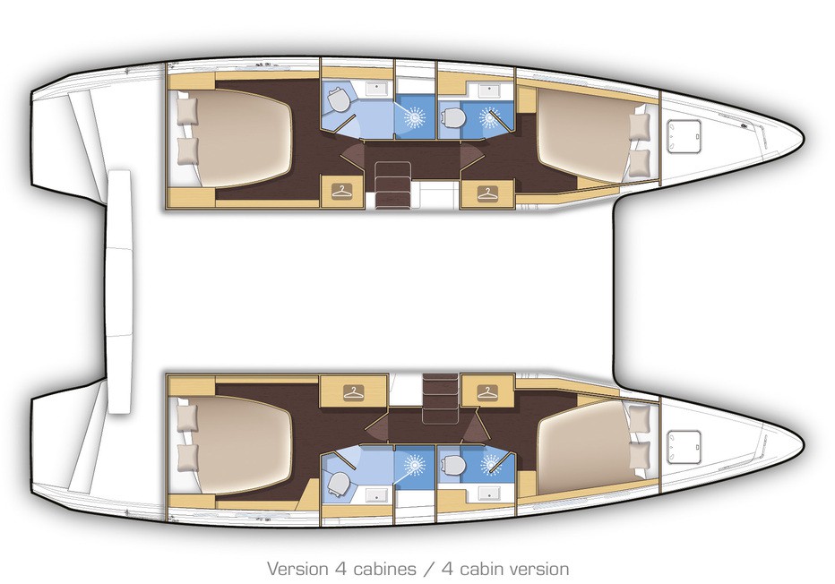 Как и у своих братьев — Lagoon 39 и Lagoon 52, матча нового катамарана чуть смещена к корме, что позволяет использовать большие, чем у обычных двухкорпусных судов паруса. К тому же она чуть короче и «стройнее», чем у них. Триммить паруса на ней легче, но эффективность парусного вооружения не уменьшается. Очень удобное рулевой управление расположено над каютами и прикрыто бимини.