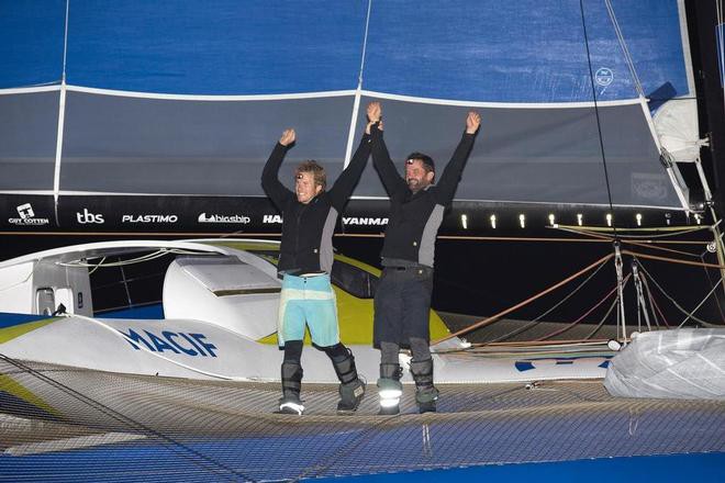 Первыми на 2015 Transat Jacques Vabre (от французского Гавра до бразильского Итажаи), как и ожидалось, финишировали два больших оставшихся в гонке тримарана класса Ultime — Macif  (Франсуа Габар/Паскаль Бидегори)  и Sadebo  (Томас Ковий/ Жан-Люк Неле). Macif преодолел дистанцию в 6340 морских миль со средней скоростью 20,75 узла, их соперники — 20,51 узла.