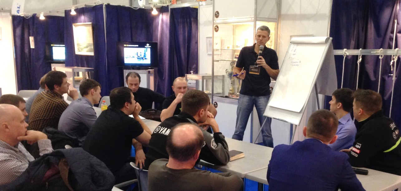 При полных залах прошли и собственные мастер-классы «ЯхтМУЗЕЯ»: «Как продавать водно-моторную технику в регионах?» для дилеров и «Как правильно выбрать яхту и катер?» для начинающих покупателей, которые провел Максим Годовых. Кроме того, несколько участников выставки «Московское Боут Шоу» презентовали в конференц-зале «ЯхтМУЗЕЯ» свою продукцию и дилерские программы, компания «Директив» представила мастер-класс «Как использовать интернет при продаже дорогих товаров и услуг», а «E-regata» организовала парусные гонки онлайн.