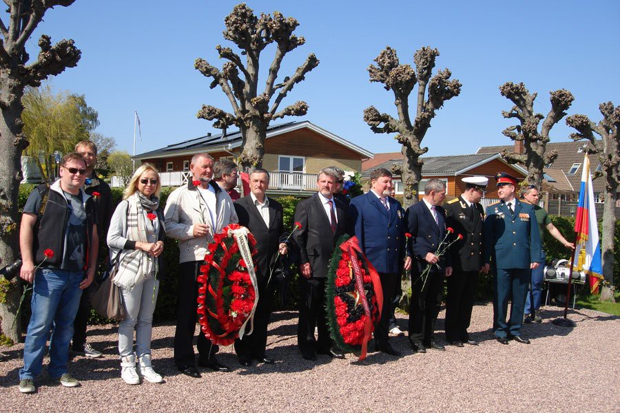 «В походе к датским берегам, приуроченном 71-й годовщине Победы в Великой Отечественной войне, приняли участие четыре калининградские яхты — „Бабушка-47“, „Океаник“, „Святой Пётр“ и „Мур-Мур“ под управлением капитанов Александра Власова, Виталия Воронина, Валерия Куприянова и Александра Горлача с 18 членами экипажей. Путь от Балтийска до датского порта Аллинге составил 180 морских миль. 8 мая экипажи яхт возложили венок у мемориальной доски погибшим при бомбардировке острова Борнхольм в городе Ренне. 9 мая у братской могилы советским воинам в городе Аллинге прошла церемония возложения венков, которую открыл посол Российской Федерации в Королевстве Дании Михаил Ванин в присутствии военного атташе и других официальных лиц. В этот же день настоятель прихода святого благоверного князя Александра Невского в Копенгагене иерей Сергий отслужил молебен по советским солдатам, захороненным на острове. Также участники похода возложили венок у одиночного захоронения старшего лейтенанта Николая Ерастова на мысе Хаммерен», — рассказал один из участников похода Сергей Жадобко.