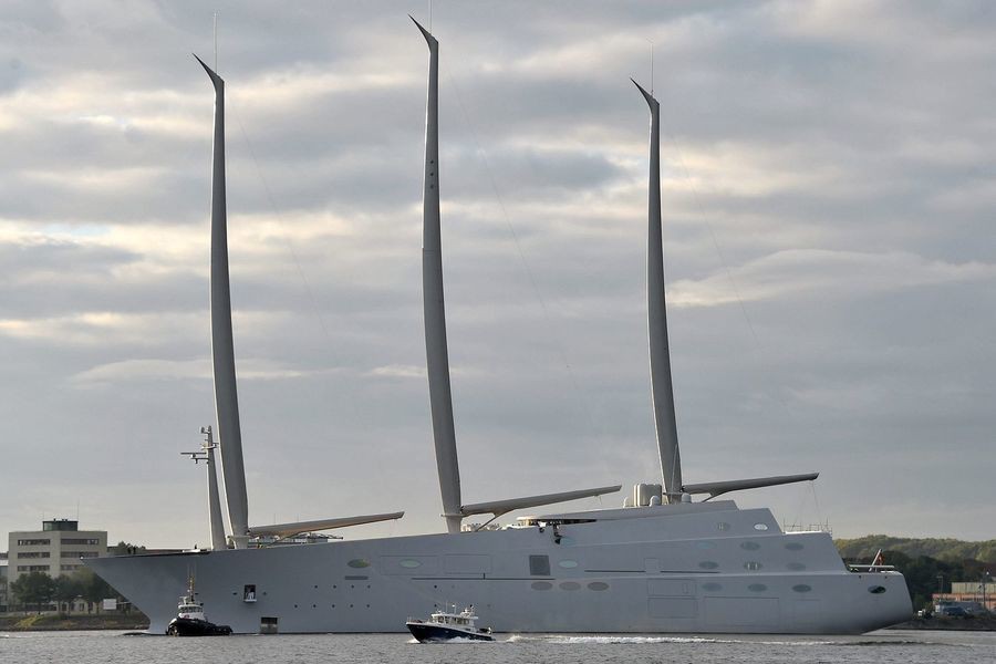 Парусная яхта «А» во второй раз вышла из доков верфи Nobiskrug в Киле. Всю зиму и весну судно простояло во временном доке, где его оснащали и перекрашивали. На прошлой неделе рабочие приступили к демонтажу временного дока, и яхту удалось сфотографировать