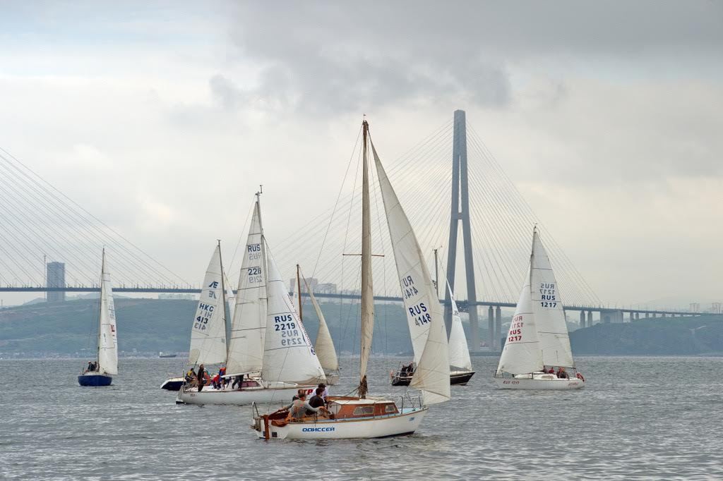Далее маршрут яхт проходил вокруг Русского острова. Длина дистанции планировалась 25 миль, с финишем в бухте Новик, на акватории яхт-клуба «Алые паруса».