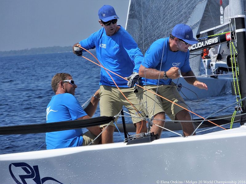 «Русские Богатыри» Игоря Рытова, стартуя близко к пину, огребли там по полной! Сначала из-за отсутствия хорошей скорости они выпали из линии, когда на них наехали сверху, потом «Богатыри» помешали другой лодке, и им пришлось раскручивать штраф. На первый знак они пришли в числе последних, затем хорошо поднялись на полном курсе, на воротах были снова оштрафованы, когда на огибании связанными влезли между буем и другой яхтой. Выбрав на второй лавировке выгодную правую сторону, Игорю опять удалось подняться почти в середину флота и финишировать в итоге 34-ым. Это худший приход команды за весь чемпионат, который пошел под выброс и в результате «Русские Богатыри» замкнули первую двадцатку в overall чемпионата.