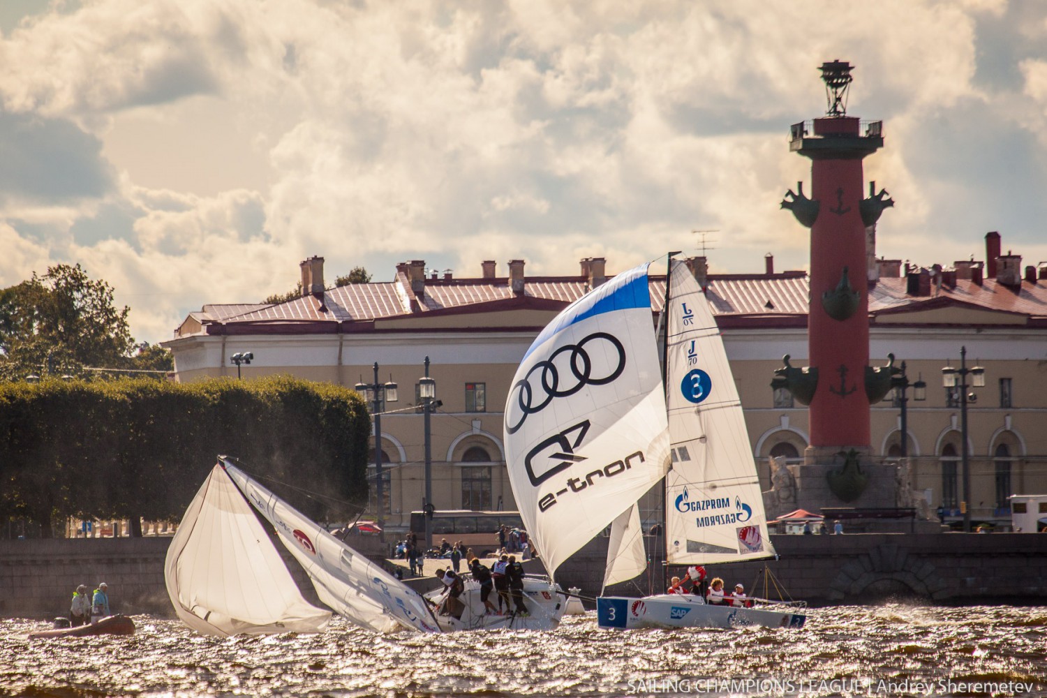 Заслуженные трофеи соревнований победители и призеры этапа Парусной Лиги чемпионов Европы получили из рук губернатора Санкт-Петербурга Георгия Полтавченко, который прибыл в гоночную деревню Яхт-клуба Санкт-Петербурга поприветствовать международный флот, который представлял 12 стран.