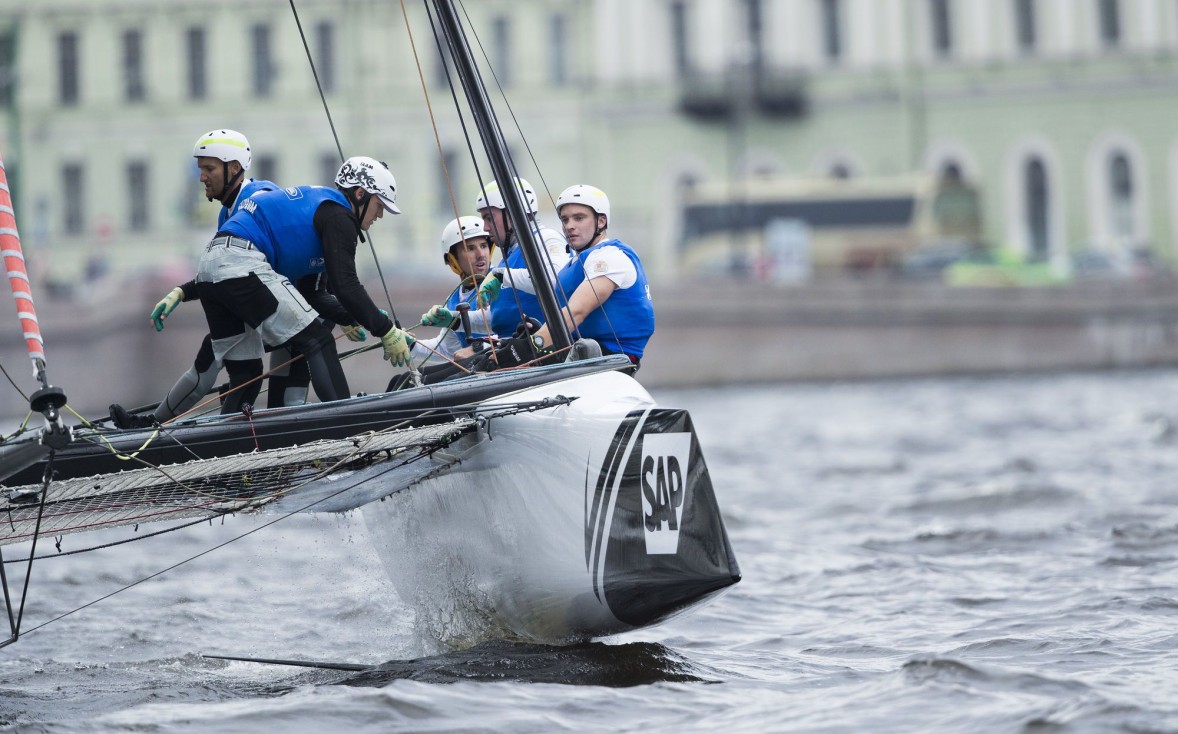 Как и ожидалось, в борьбу за верхние строчки зачета с первых стартов вели фавориты сезона – датчане SAPExtremeTeam, швейцарская Alinghi, OmanAir и австрийские ветераны серии RedBull. Как отметил на пресс конференции рулевой датской команды Джес Грем-Дженсен, в прошлом сезоне SAP Extreme была последней в Санкт-Петербурге, и сейчас перед командой стоит цель доказать, что она способна побеждать. Пока что датчанам это удается – с минимальным преимуществом в один пункт SAP Extreme лидирует после первого дня гонок.