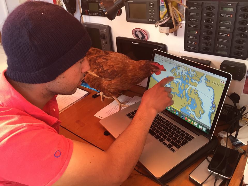 Соде путешествует по миру на 12-метровой яхте Yvinec (Scorpion 9/1985). Француз живет на судне и мечтает за несколько лет обойти вокруг света. В мае 2014 года он вместе с Моник — а ей предположительно 4 года и родом она с Азорских островов — пересек Атлантику, а затем год провел на Карибах, чтобы заработать денег для дальнейшего путешествия. В августе 2015 года они пришли в Гренландию и остановились там на зимовку, причем в 30 км от ближайшего населенного пункта. Моник стала настоящей местной знаменитостью. Некоторые жители острова, не видевшие до этого живых куриц, приезжали посмотреть на нее. При этом за время зимовки, продолжавшейся 130 дней, птица снесла хозяину 109 яиц. Затем Соде снова вышел в море и вот недавно добрался до Аляски.