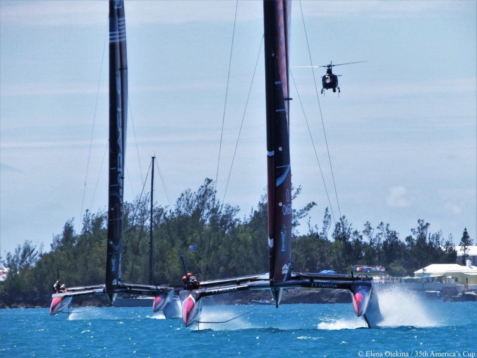 Во второй гонке старт опять выиграл Питер Берлинг, показав отличное владение техникой матч-рейса, в отсутствии которой его многие на нынешнем Кубке упрекали. Классически поднырнув на пре-старте под соперника, Питер ловко привел катамаранOracle к ветру. Пока американская лодка, потеряв скорость, стояла на месте, новозеландцы разогнались, на 14 секунд обогнали американцев на старте и на 12 секунд на решающей первой марке.