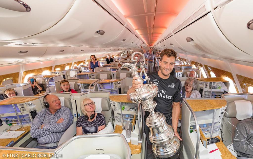 Фоторепортаж с борта самолета, на котором летит домой экипаж Emirates Team New Zealand