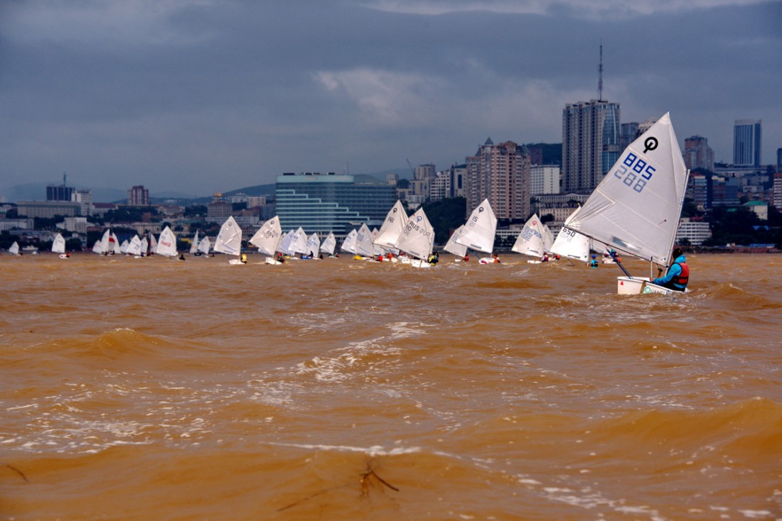 Юным яхтсменам достались не самые лучшие погодные условия. Пришедший на запад Приморья циклон и сильные дожди спровоцировали в акватории залива сильное течение - в три раза сильнее обычного.