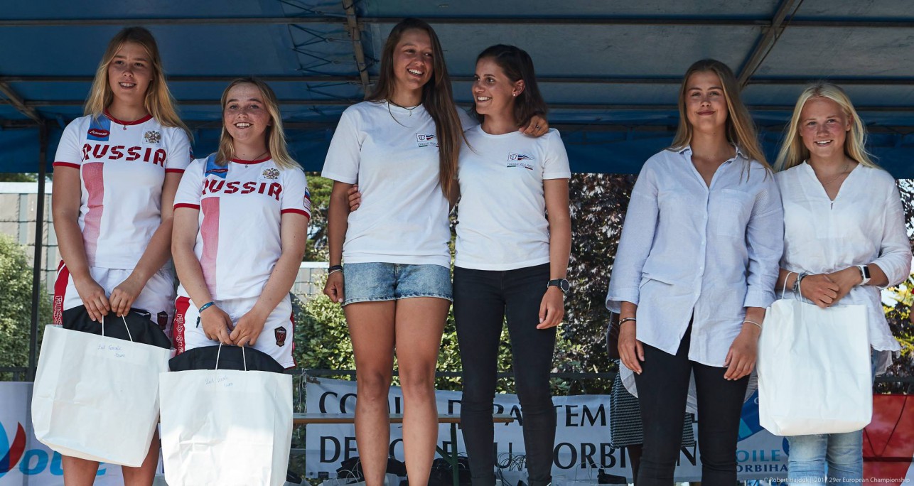 Сразу три российских лодки смогли прорваться в «Золотой флот» чемпионата (что уже можно считать не самым плохим результатом в этом сложном и скоростном классе), но лишь одному из них сопутствовала окончательная удача. В трудной борьбе российская пара Зоя Новикова/Диана Кабирова смогла занять второе место среди девушек (11 в общем зачете). Это несомненный успех (напомним, что летом этого года наши девушки смогли еще выиграть и один из этапов Еврокубка в Гдыне) – но что именно привело юный женский экипаж к нему?