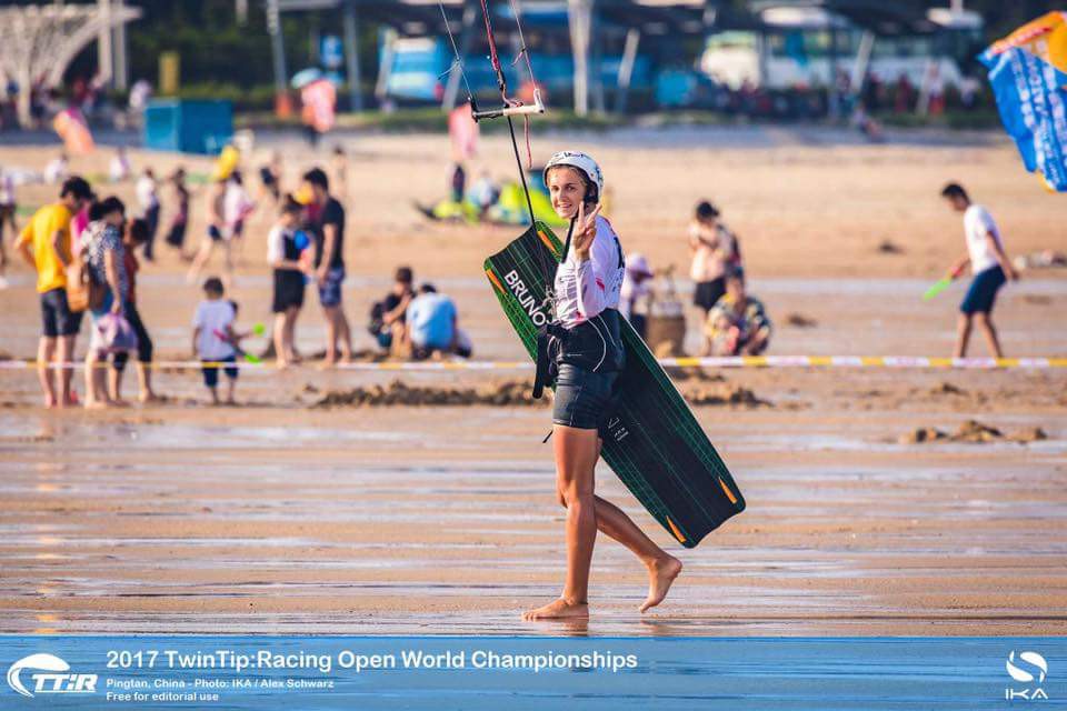 «Первое место на третьем этапе Кубка мира по фойлам в Пингтане. Ещё я попробовала себя в новой дисциплине - слалом (класс твинтип), по которой в то же время проходил открытый чемпионат мира. Неожиданно заняла второе место.