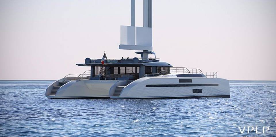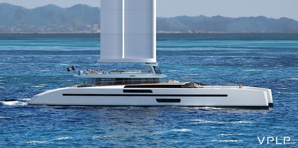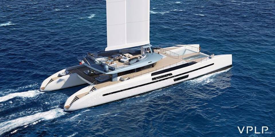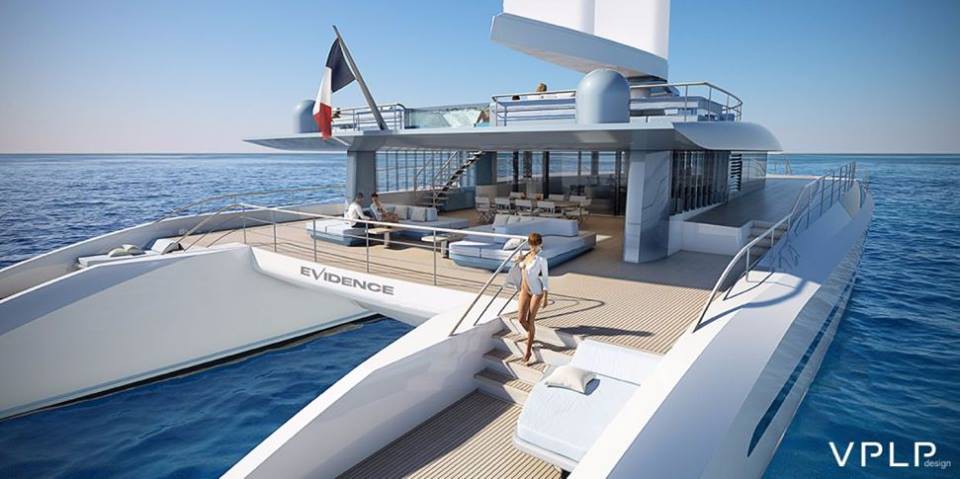 Бюро VPLP выступило с проектом 156-футового океанского катамарана Evidence с крылатым полужестким парусным вооружением.