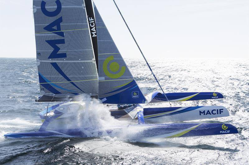 Франсуа Габар и его гигантский тримаран Macif замерли на "низком старте" в ожидании погодного окна