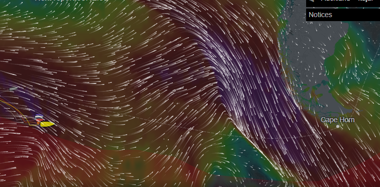 Холодно, часто идет снег, плюс сильный порывистый ветер – в воскресенье дуло за 40 узлов. Но, судя по всему, это пока цветочки. Как утверждает прогноз, на подходе к мысу Горн участников гонки ждут ягодки -