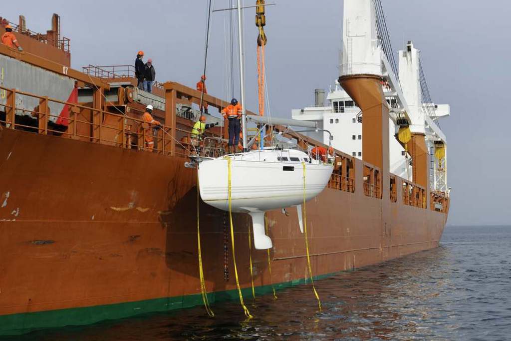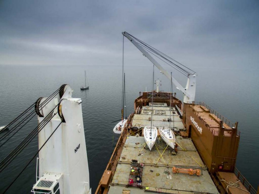 Все бы ничего, но в район нахождения верфи океанский транспорт из-за своей осадки подойти не смог - яхты пришлось грузить на его борт прямо в открытом море. По счастью, удачному проведению этой операции способствовала очень тихая погода.