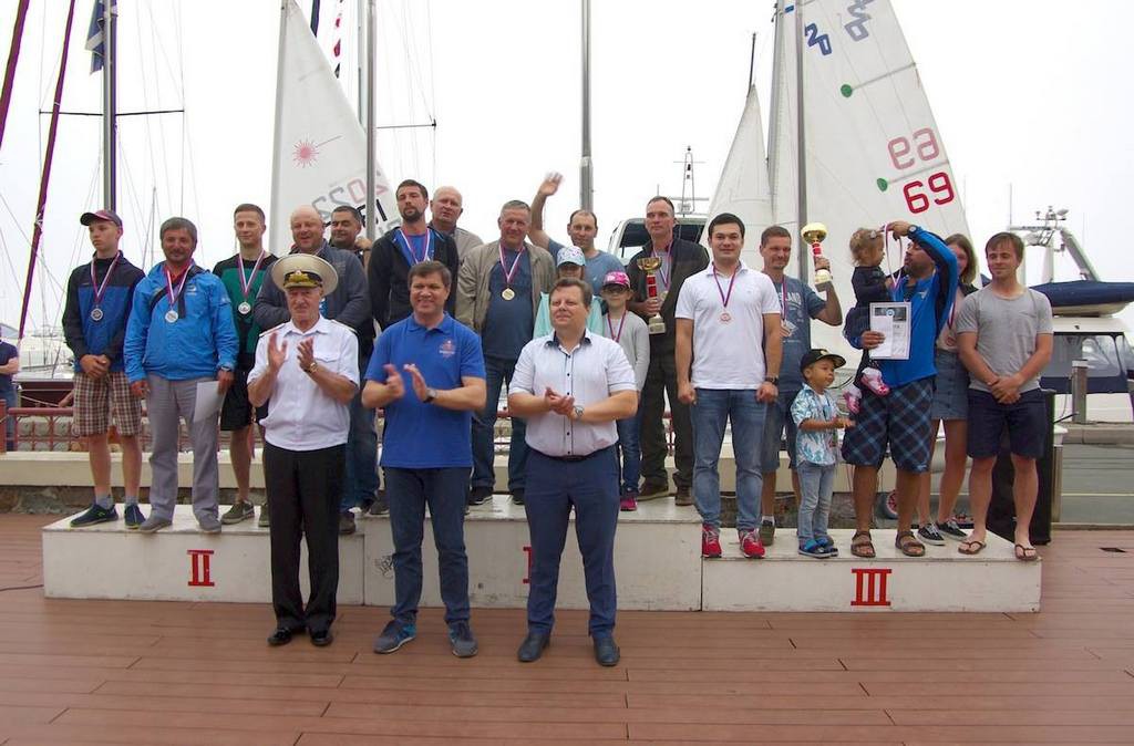 Победители и призеры каждой зачетной группы получили кубки и медали. Специальным призом из рук главы города был награжден старейший участник регаты Юрий Германович Пивоваров, которому в этом году исполнилось 80 лет. Наравне со всеми участниками яхта «Вега», которой управляет Юрий Германович, прошла все четыре гонки чемпионата.