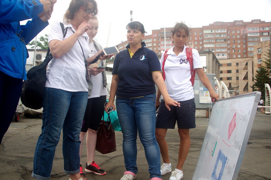 Секретарь регаты Татьяна Чуева рассказала о том, как выставляется дистанция на воде, куда и по какой схеме будут двигаться яхты, и предупредила, что сегодня из-за сильного порывистого ветра борьба будет интересной, а яхты могут идти с большим креном.