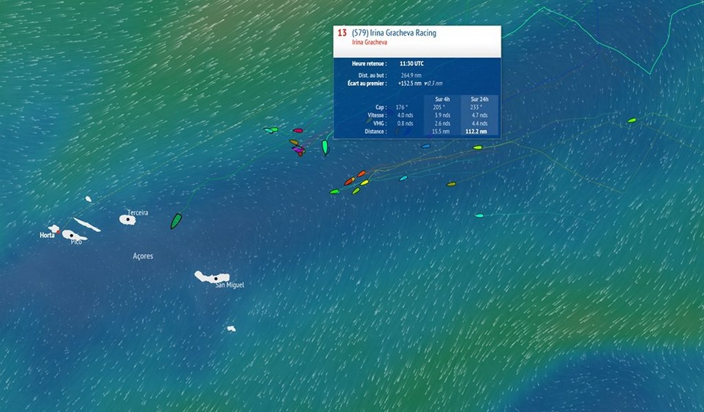 Ирина Грачева (дивизион Series, на дистанции остались 33 лодки) на настоящий момент занимает 13 позицию, отставая от лидера на 152 мили. До финиша ей остается пройти еще 265 миль по ортодромии.