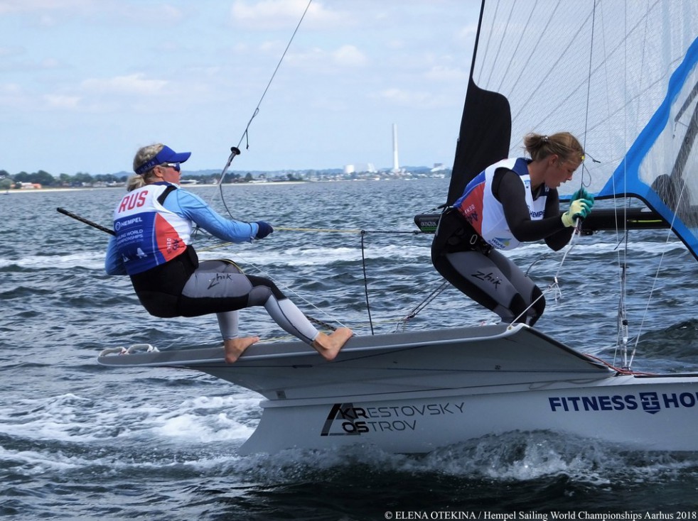 В женском 49erFX чемпионка Олимпиады в Рио и участница последней Volvo Ocean Race бразильянка Мартине Граэл стала только 5-й по итогам дня в обоих флотах, зато на первое место вышла ее соратница по VOR датчанка Джена Хансен, которая две выигранных гонки разбавила 18-м приходом во второй из трех гонок дня.