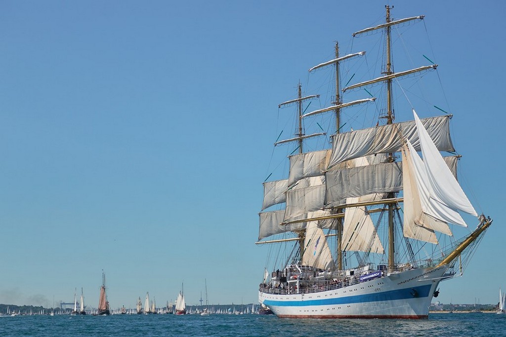 Ярче всех среди россиян выступил фрегат «Мир» - он возглавлял парад больших парусников.