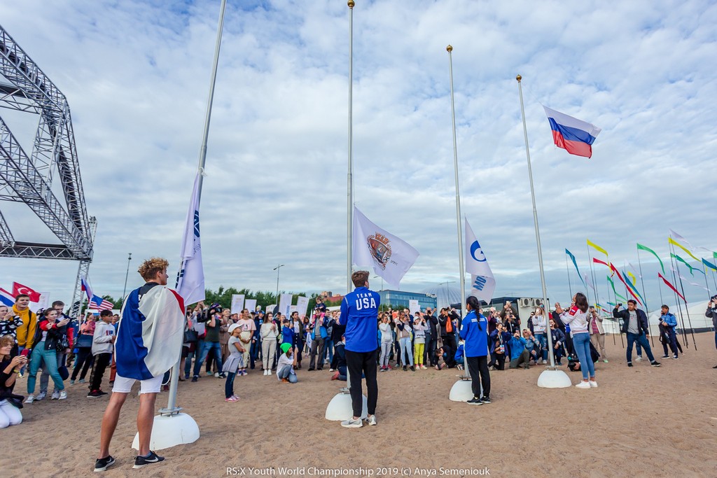 На сцене лучшие молодые виндсерферы мира, в числе которых серебряный призер чемпионата мира Яна Резникова и действующий чемпион Фабьен Пьяназа, подняли флаги страны-хозяйки турнира – России, генерального партнера регаты – ПАО "Газпром", организатора – это Яхт-клуб Санкт-Петербурга и Федерации класса RS:X.