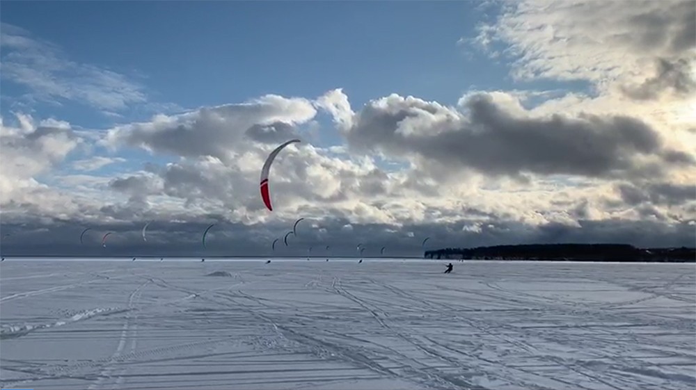 Прогноз обещал легкие минусовые температуры и хороший ветер, что и оправдалось в полной мере. В первый день участников ждал комфортный северо-западный ветер силой 10-12 узлов. Временами сквозь облака проглядывало солнце. Знаки дистанции были выставлены рядом с устьем реки Троца, и гонщикам при ее прохождении приходилось учитывать близость берега.