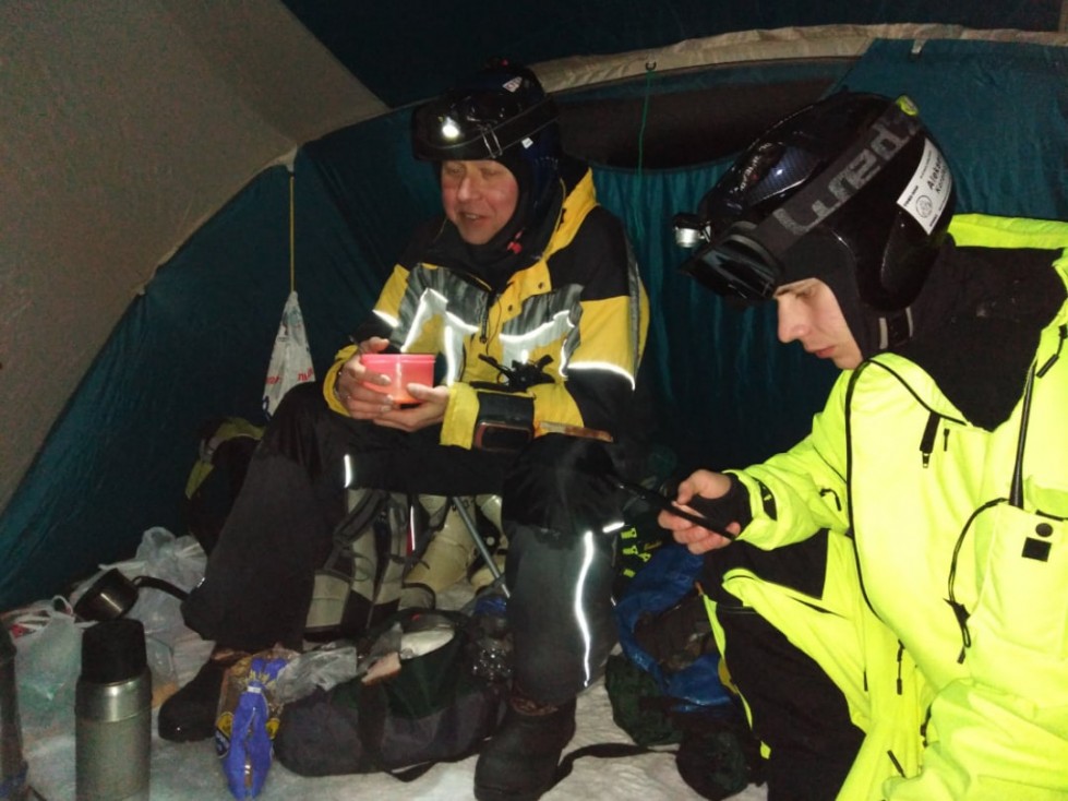 Первый день оказался благосклонен к участникам гонки – хорошая погода, легкий мороз, солнце, умеренный ветер – все помогало в дороге. Две команды лидеров  – «Northren Express» (Дмитрий Никуличев и Эдуард Радаев и «Aplums» (Борис Филимонов и Фарид Арсланов) – смогли пройти полный круг (86 км по генеральному курсу) и вернуться к точке старта. Остальные команды в 21.00 разложили палатки и заночевали на дистанции. Продолжить гонку им разрешено в 7 утра.