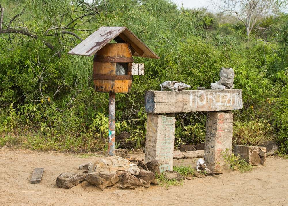 Такая же бочка в те же годы появилась на Галапагосах – на острове Флореана, и что характерно, в бухте, которая называется Почтовая. Эта бочка сохранилась до наших дней, ну, не та же самая, а ее наследница – через года, через века (на снимке). Только сейчас используют ее для отправки писем не моряки, а туристы с круизных лайнеров и яхтсмены.