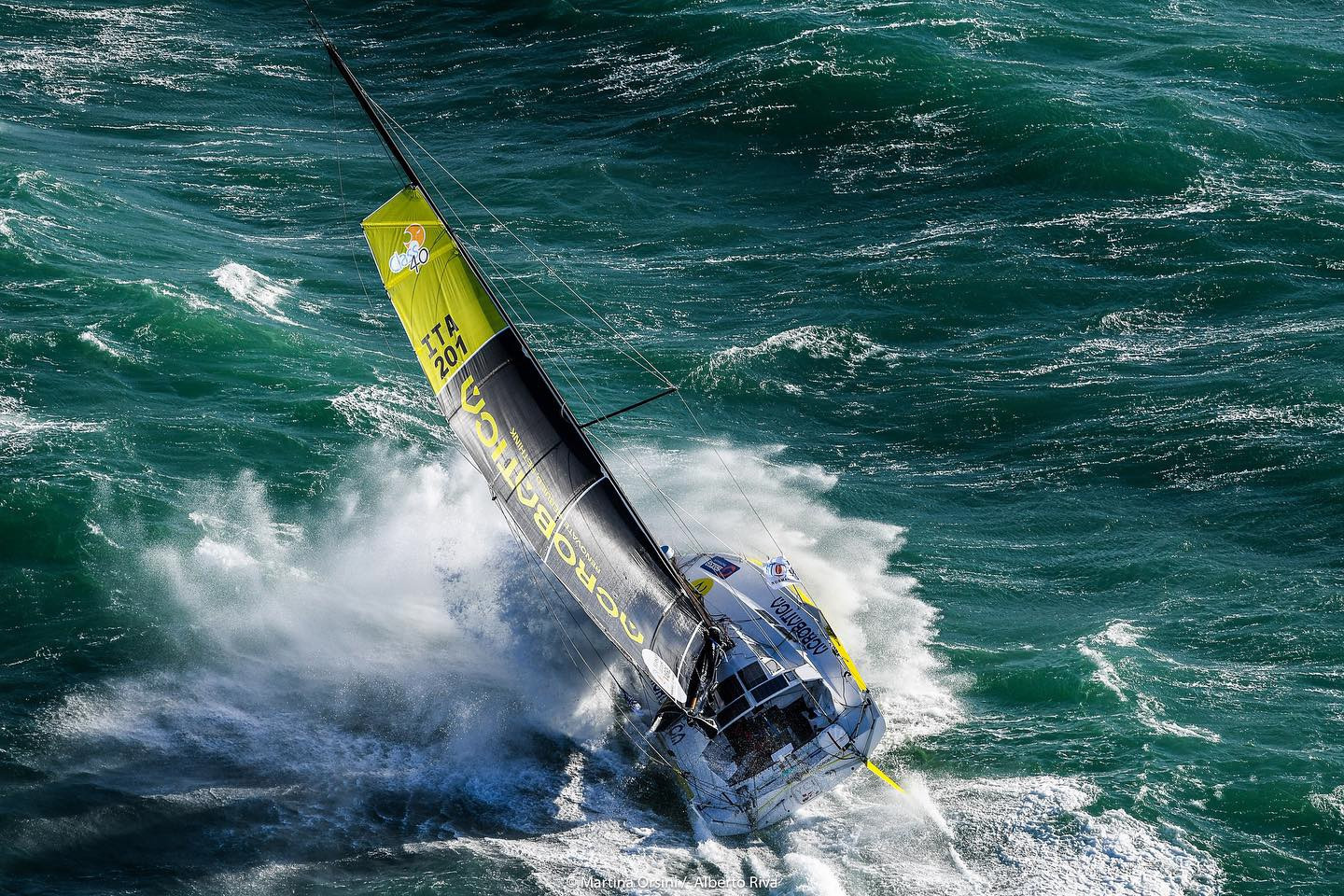 Во вторник 9 июля ее экипаж - Альберто Рива, Жан Марре и Томазо Стелла - подал сигнал Mayday. В этот момент яхта находилась в 300 милях к северу от Азорских островов. Сигнал был принят на другой участвующей в гонке яхте - E.Leclerc-Ville Legrand, принадлежащей Антуану и Оливье Магре. Они немедленно направились к терпящим бедствие, Однако из-за штормовых условий к месту аварии они прибыли уже к развязке: Альберто, Жан и Томазо находились на борту супертанкера Silver Star, следовавшего в Соединенные Штаты, а яхты Acrobatica на поверхности воды не было…