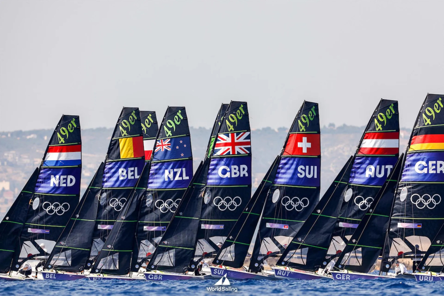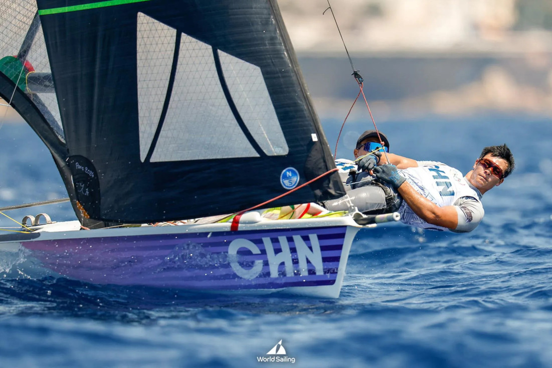 Сначала старты были отложены, а в итоге виндсерферы iQFoil так и остались скучать в неподвижности, похожие на приколотых к берегу бабочек. Лишь Skiff-ы 49er и 49erFX смогли выйти на дистанцию.