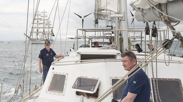 По их словам местный «бархатный сезон» подарил им в переходе отличную погоду , а проводы «Братства» превратились в настоящий морской парад - с эскортом катеров, яхт и фрегатом бразильских ВМС Cisne Branco.