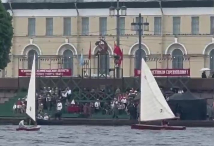 Но у всякой истории есть предыстория, и у героев-буеристов оно было яхтенным … Вот почему в эти дни у Васильевского острова снимались кадры гонок под парусами. Режиссер Александр Котт следит за тем, чтобы все было «натурально»: красные флаги, транспаранты, лозунги по сенью серпа и молота, а консультанты-яхтсмены за тем, чтобы лодки были показаны во всей своей красе.