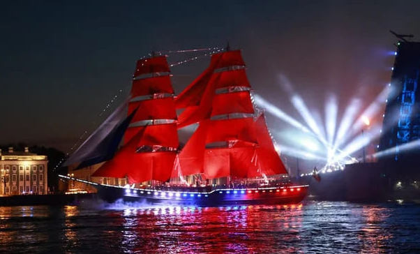 В Санкт-Петербурге прошел праздник выпускников, главное украшение которого – корабль под «литературными» парусами, отсылающими к повести Александра Грина.