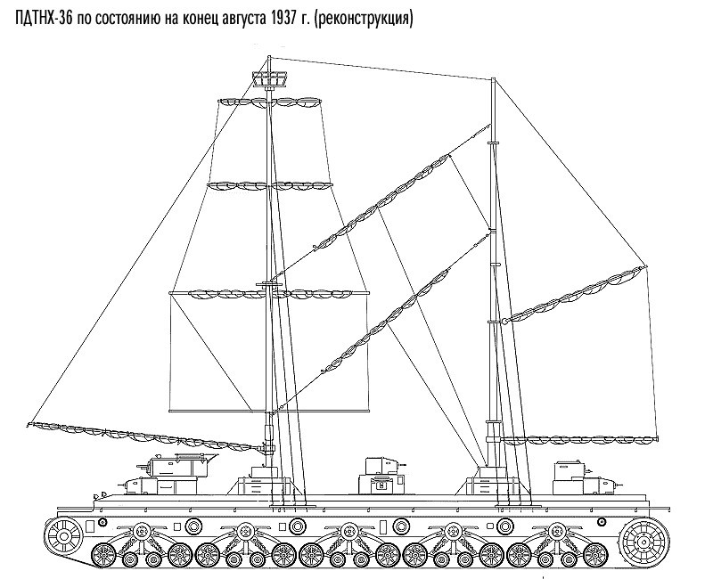 В 1935-м году он предоставил председателю своей комиссии докладную записку «О проектах специальных экономичных танков…». Никита Сергеевич предложил комплектовать бронетанковые части, находящиеся в Средней Азии, парусными танками, которые должны были обеспечить экономию топлива и моторесурса танков. Среди предложенных проектов был легкий бронеавтомобиль ПБНХ-35, полугусеничный двухбашенный танк ПТНХ-35, двухмачтовый девятибашенный танк ПДТНХ-36, чей экипаж состоял из 25 человек, в числе которых был танкист-марсовый.