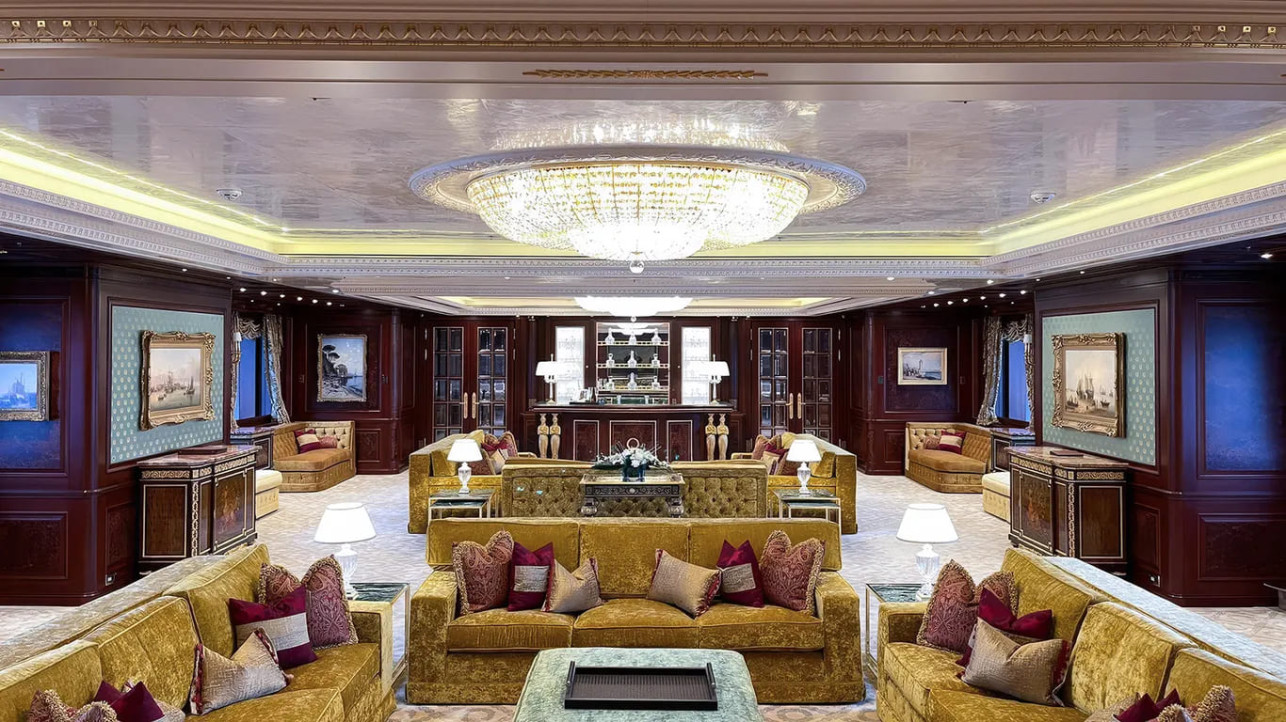 Действительно, если о 70-метровых карбоновых мачтах, парусах общей площадью 2934 кв. м, энергоустановке и заявленной скорости более 20 узлов было известно благодаря информации от голландской верфи Oceanco, где она была спущена на воду в 2018 году, то о внутреннем интерьере ходили лишь слухи, похожие на сказки Шахерезады. И вот, извольте убедиться, в этом сравнении что-то есть, хотя дизайнеры предпочитают говорить о стиле «Людовик XVI». Но тут же на вкус, на цвет…