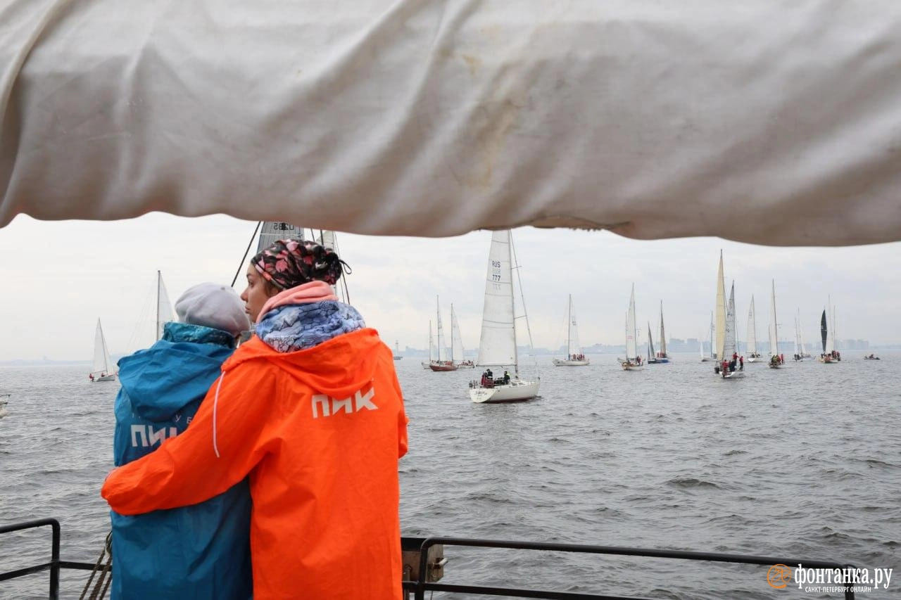 58 питерских яхт пришли воскресным утром к первому осевому бую Северного фарватера.
