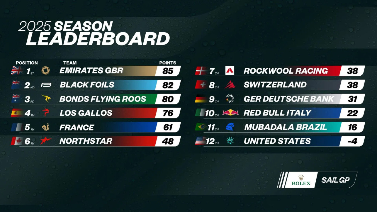 Трио финалистов выглядело так: Великобритания, Новая Зеландия, Германия (немецкая команда после победы на предыдущем этапе и на этот раз была в отличной форме). В такой последовательности они и финишировали. И это третья победа Emirates Great Britain SailGP Team в сезоне, таким достижением никто из соперников похвастаться не может. И посему первое место британцев (с эмиратовским «оттенком») в общем зачете сезона абсолютно заслужено.