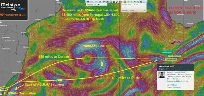 Сейчас 11 яхт ALMA Globe 5.80 со стакселями-«носовыми платками» пробиваются сквозь шторм к Дурбану, заодно испытывая всю «прелесть» общения с мощным и непредсказуемым течением Агульяс. За кормой 19-футовых лодок уже 23 400 миль, до завершения кругосветки еще четыре «с копейками».