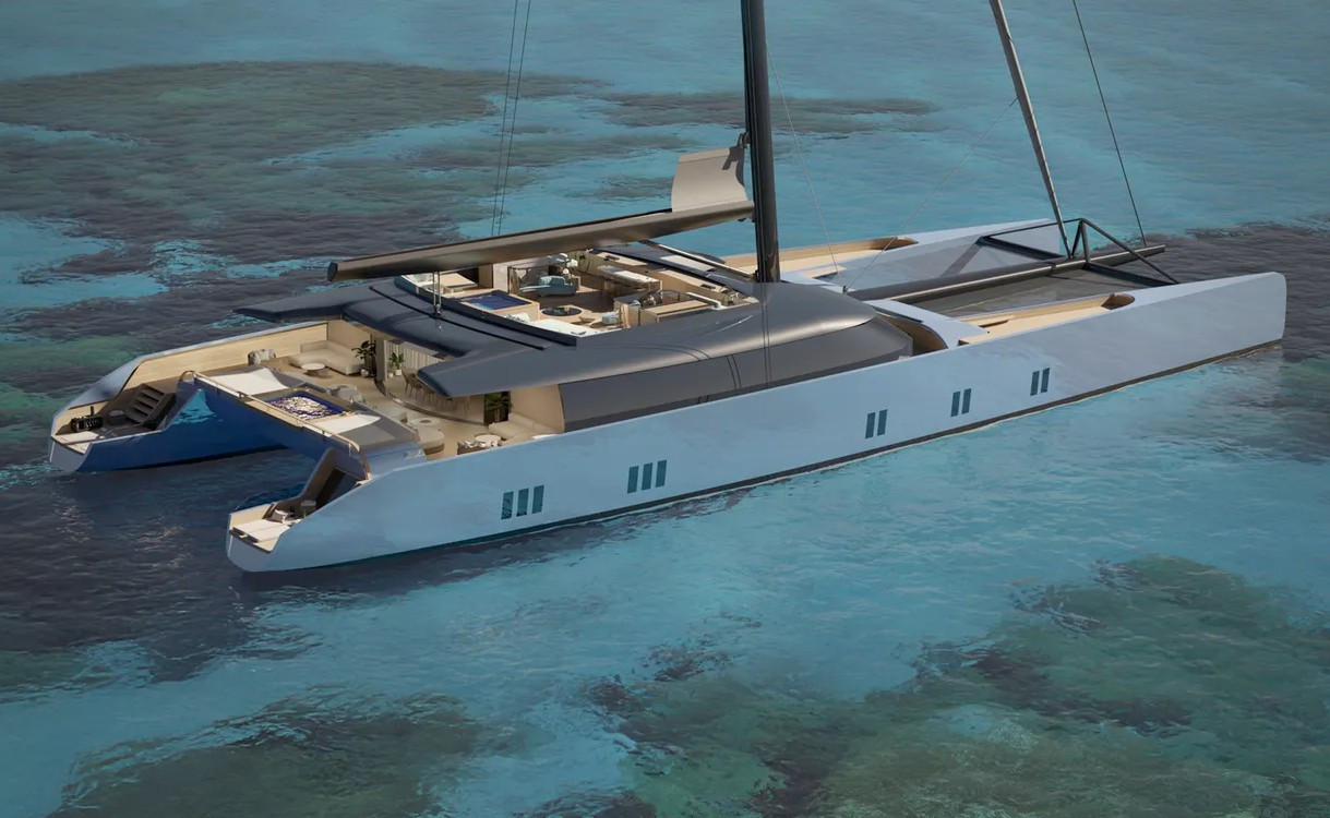 Project Elemental – это совместное творение двух дизайн-бюро: Tripp Design и Design Unlimited. По мере сил и таланта они решили поставленную перед ними задачу, а именно: создать судно для тех, кому не нравится крен гоночных яхт, но есть желание идти под парусами со скоростью 18 узлов, чтобы, значит, было весело и не страшно. Разумеется, при этом пребывая в комфорте и роскоши, сравнимых с условиями, что обычны для моторных суперъяхт.